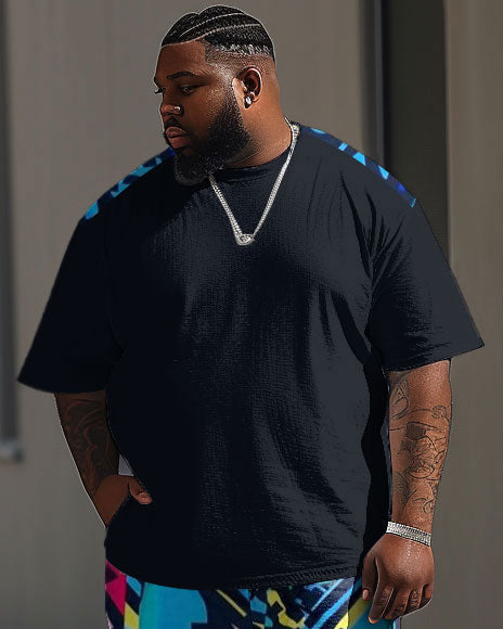 Does this contrasting design make you excited? The T-shirt features a blue print on the shoulder, while the blue graffitied pants take it to the next level. The relaxed fit ensures a comfortable fit, even for larger builds. This street-smart set is perfect for those who dare to be different.