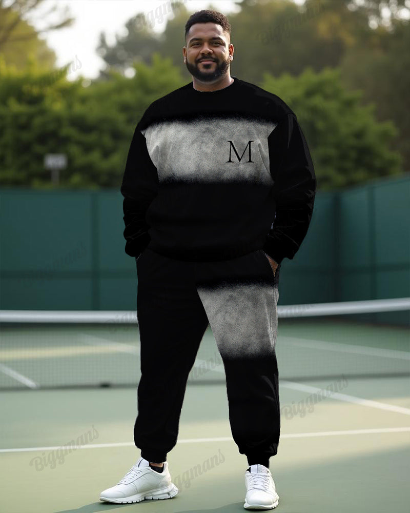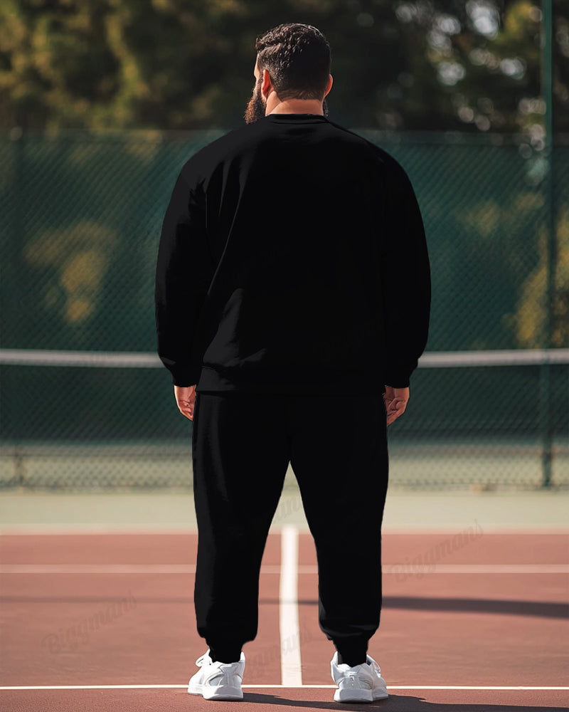 Casual Simple Letter Men's Plus Size Sweatshirt Two-Piece Set