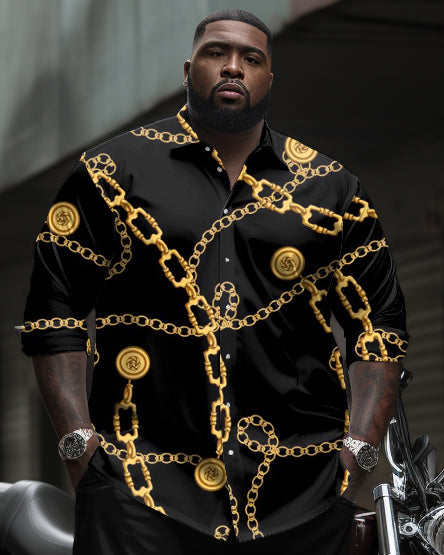 Chain Pattern Printed Long Sleeve Lapel Shirt 2 Piece Set Men's Plus Size