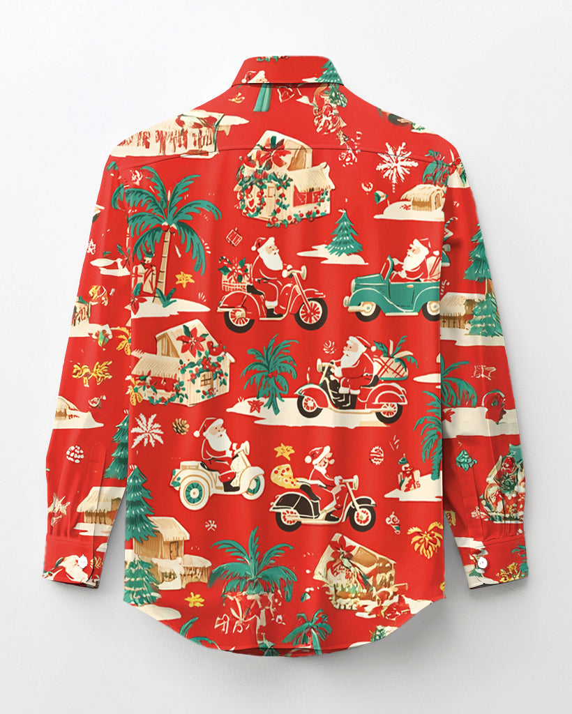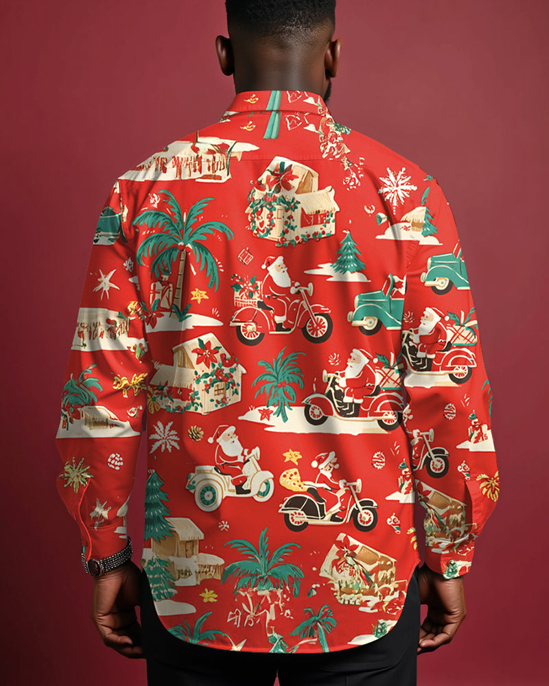 Christmas-Men's Plus Size Cotton Long Sleeve Lapel Shirt