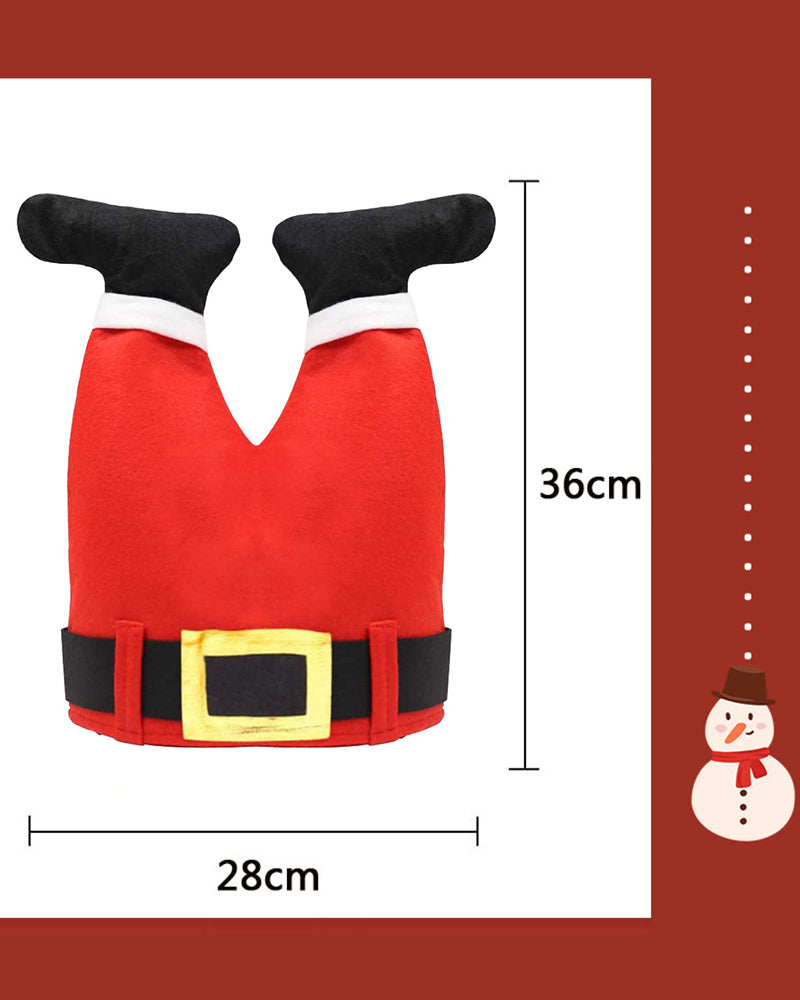This quirky red trouser leg cap Christmas hat has a unique and eye-catching shape. Bright red colour with personalised trouser leg design, full of creativity and fun. Let you stand out in the Christmas party, become the focus. Wear it to add a joyful atmosphere to the holiday, release your quirky nature, and enjoy the joyous time of Christmas together.