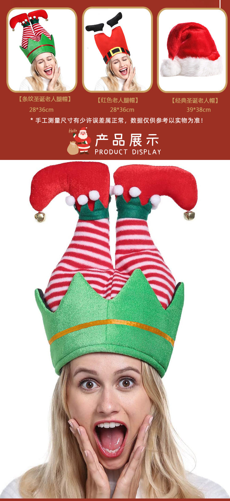 Product Style: Christmas creative weird trouser leg cap, Christmas hatMaterial: Flannel, PP cotton