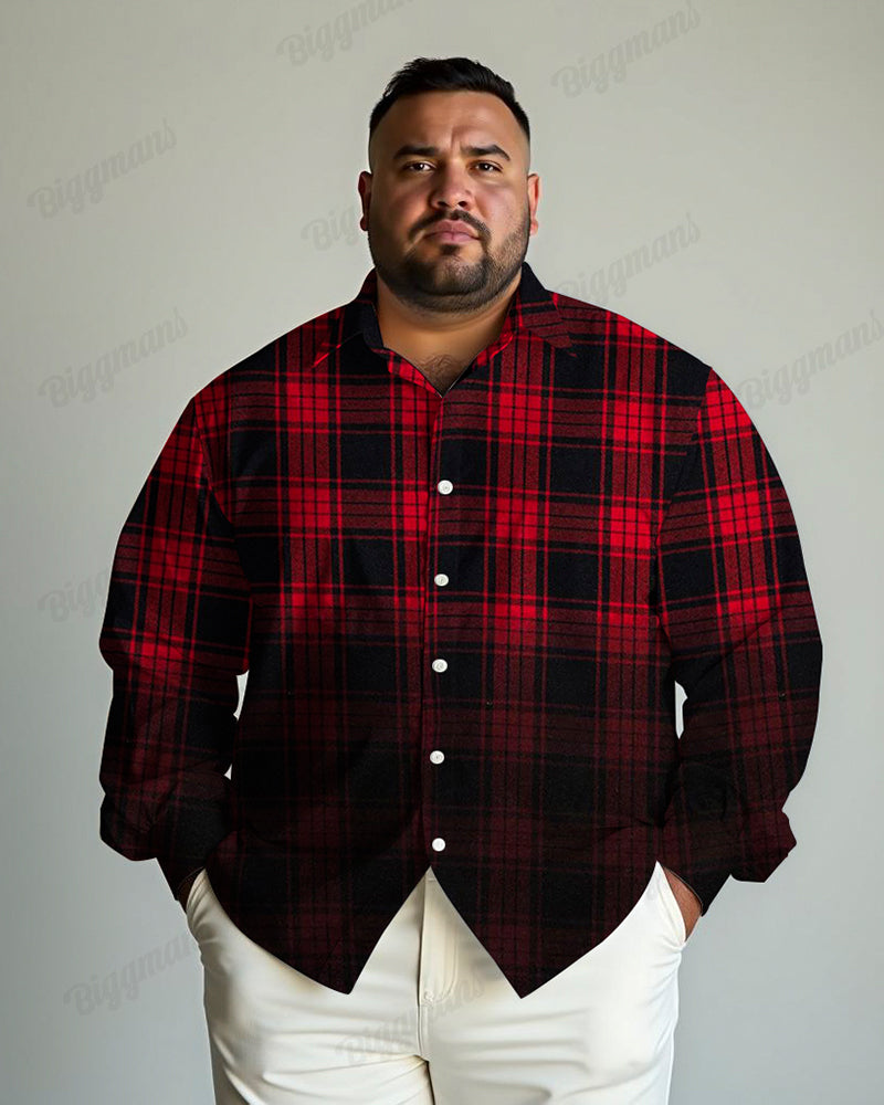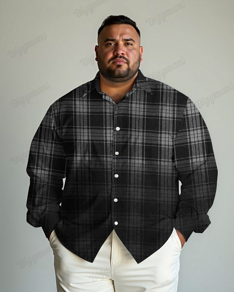 Classic Check Gradient Long Sleeve Lapel Shirt Men's Plus Size