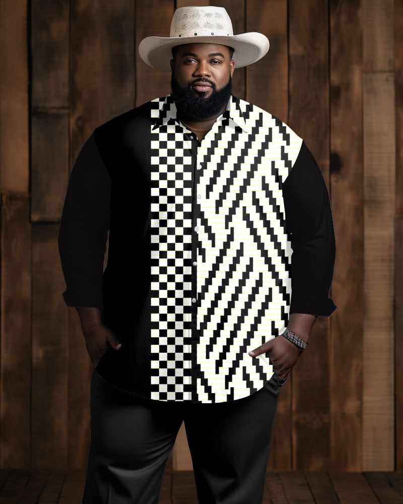 Classic Geometric Long Sleeve Lapel Long Sleeve Shirt Men's Plus Size