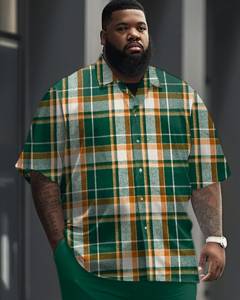Make a statement with this men's big & tall two-piece set featuring a classic green plaid design. Made from stretchable blend fabric and designed with a 3D relaxed fit, it's perfect for everyday wear. Whether you're dressing casually or going for a more formal look, this set adapts effortlessly to any occasion.