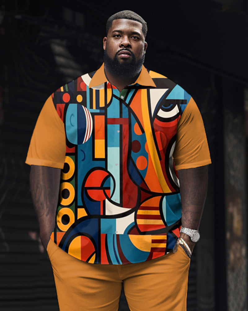Colored Irregular Puzzle Printed Large Men's Short Sleeved Shirt Set