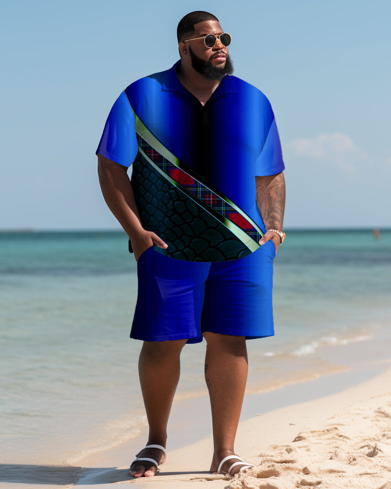 Plus Size L-9XL Hawaiian Shirt Shorts Set is a stylish outfit for summer. It consists of a Hawaiian-style short-sleeve shirt and comfortable shorts for men looking for on-trend and casual styles.