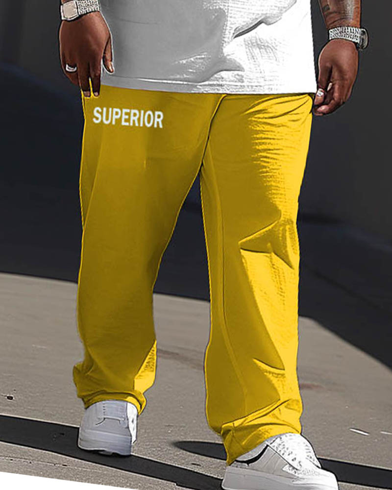 This men’s big & tall two-piece set offers a fresh take on casual athletic style with a striking "A" and "SUPERIOR" lettering. The yellow-and-white contrast creates a vibrant design. Its stylish design offers versatility for multiple occasions. Crafted for summer and spring, the relaxed fit ensures maximum comfort.