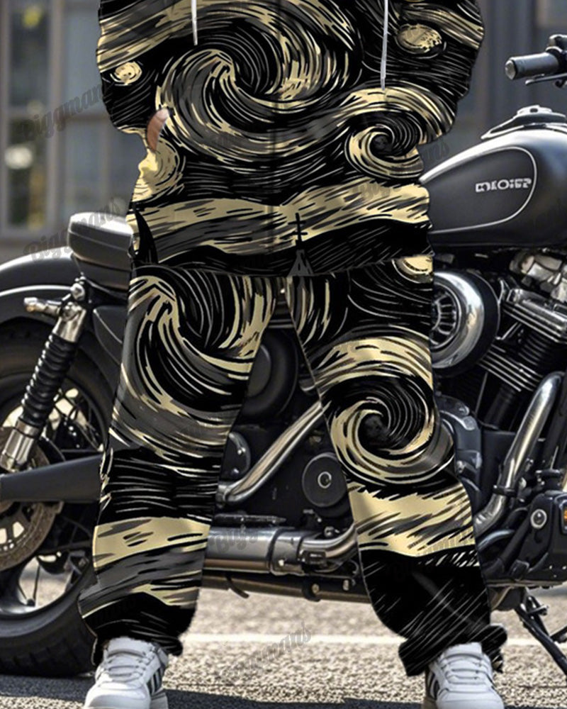 Contrasting Van Gogh Print Plus Size Long-sleeved Zipper Hoodie Set