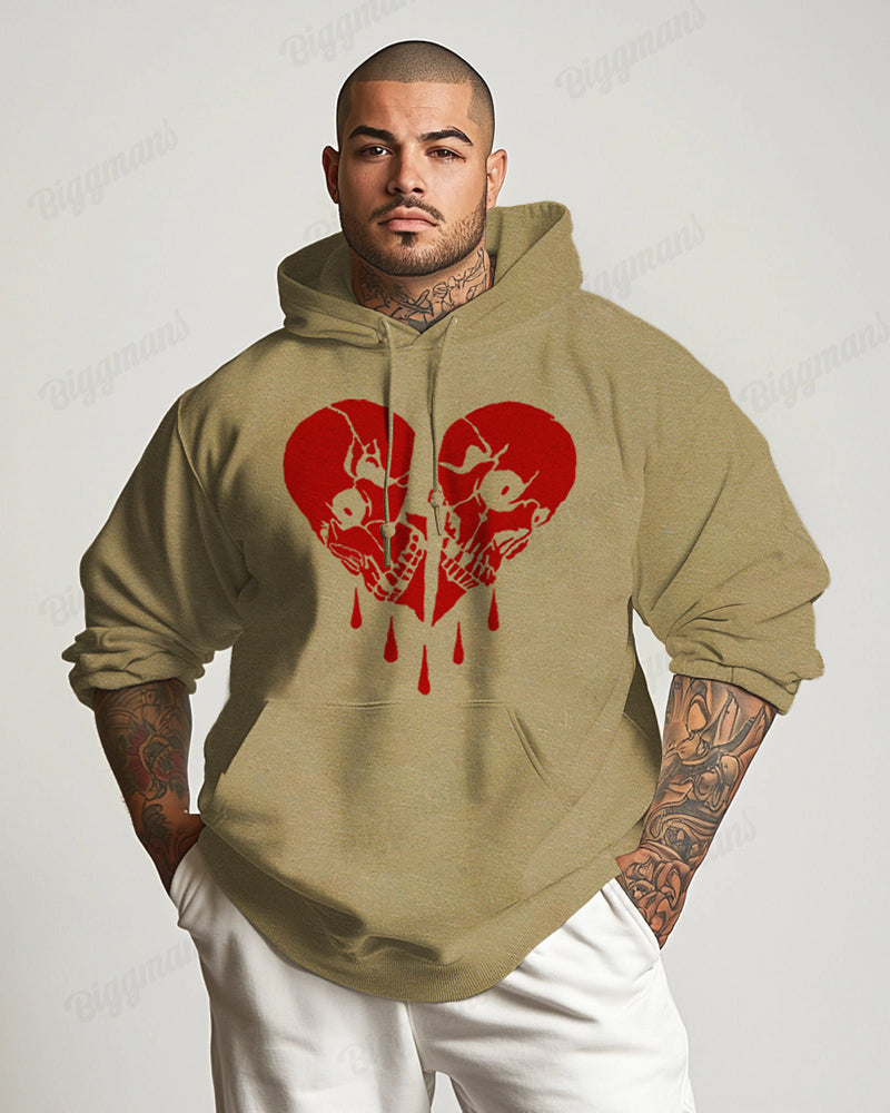Cotton-Double Bone Love Pattern Printed Men's Loose Oversized Hoodie