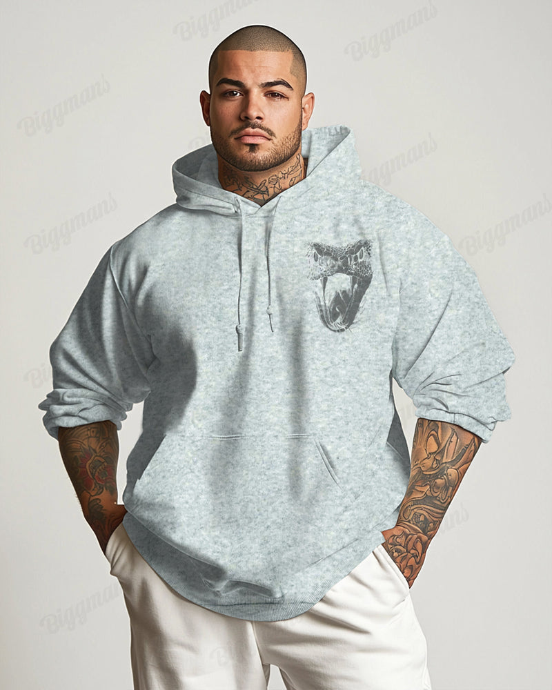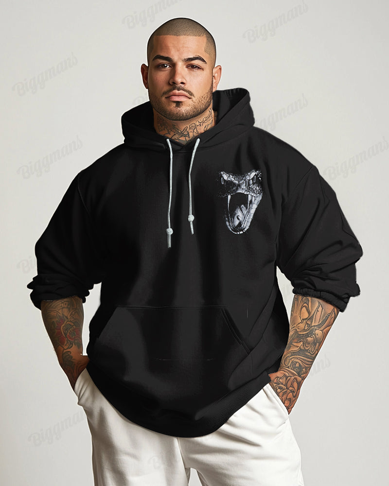 This black men’s hoodie makes a strong statement. With a relaxed fit, it’s perfect for any occasion. The bold snake head print, inspired by the Black Mamba, showcases nature's majesty. Isn't it amazing how the contrasting front/back prints create such a striking look? Made from soft cotton, this hoodie ensures comfort. Own this piece and embrace your bold side!