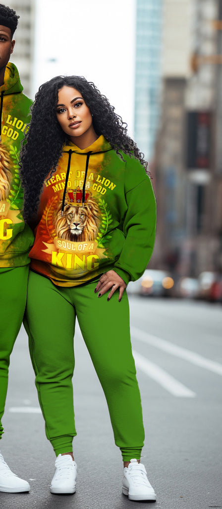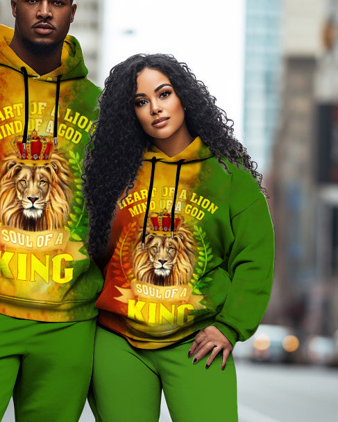 This brings a bold twist to matching outfits. Featuring a striking gradient design and a fierce lion print, it symbolizes strength and love fashionably. The loose and comfortable fit is ideal for cozy days, while the street-inspired vibe ensures you stand out.