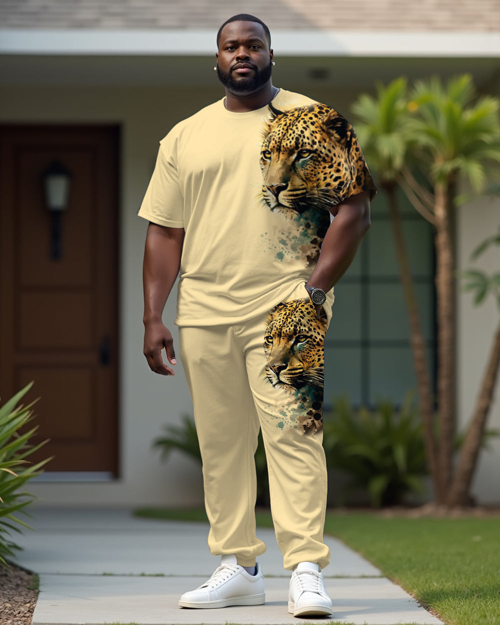 Couple Focused Leopard Love Symbolic T-Shirt Trousers Suit Large Size