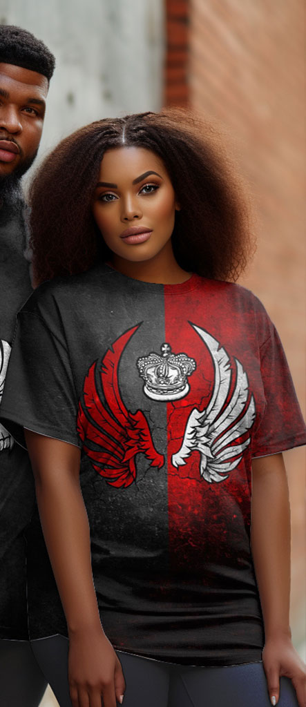 Do you want to share an edgy style with your partner? Featuring a striking skull and wings design contrasting with a colorful block pattern, this Couple's T-Shirt is suit for couples who want to express their shared taste for bold fashion. It can help you stand out at a theme party and give you a unique style as a couple. You can pair these tees with classic jeans and canvas sneakers for a casual yet cohesive look, or layer them under a stylish blazer and pair them with a pair of sleek, sophisticated loafers.
