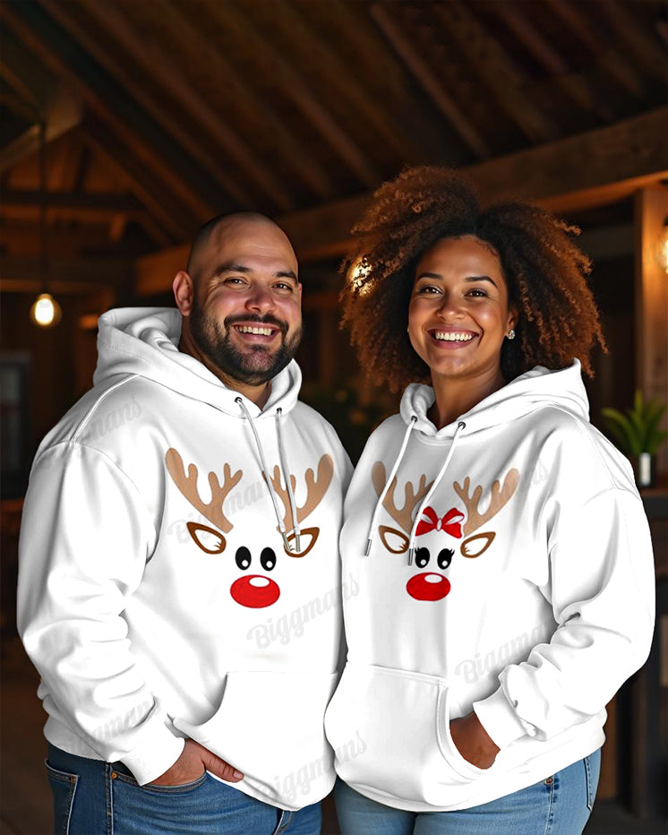 Couple Plus Size Cute Elk Pattern Print Long Sleeve Hoodie