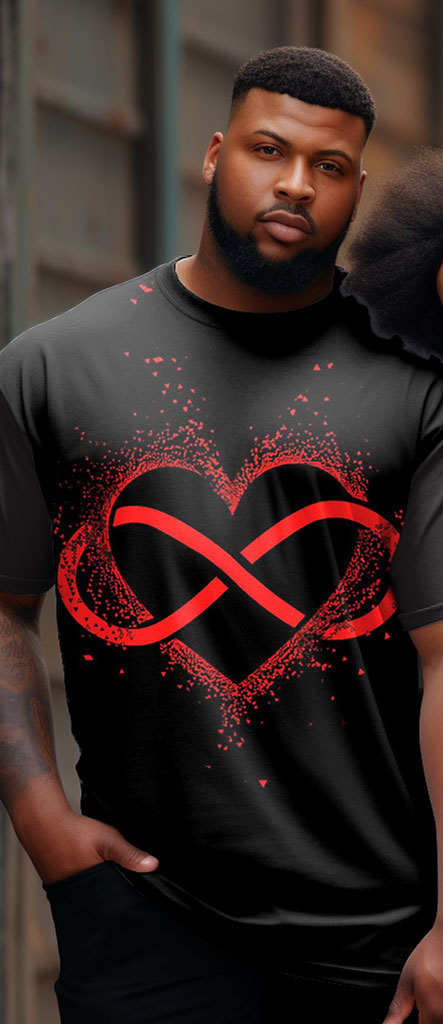 Celebrate connection with these big-size matching tees for couples, where the fusion of heart and Möbius strip motifs symbolizes endless love. The breathable blend offers cloud-like softness, while the relaxed fit flatters every body type. Perfect for couples who appreciate subtle romance in everyday wear.