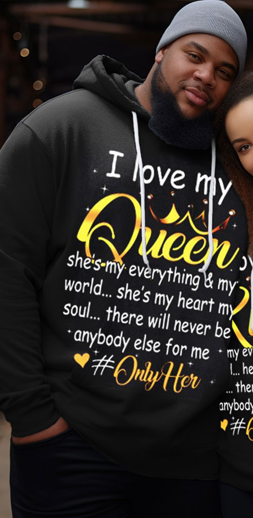 Plus size casual couple sweatshirt is a kind of casual clothing specially designed for plus size people, characterized by the comfort of the sweatshirt and the matching of couple styles. Here are some of the features and design elements of the garment: