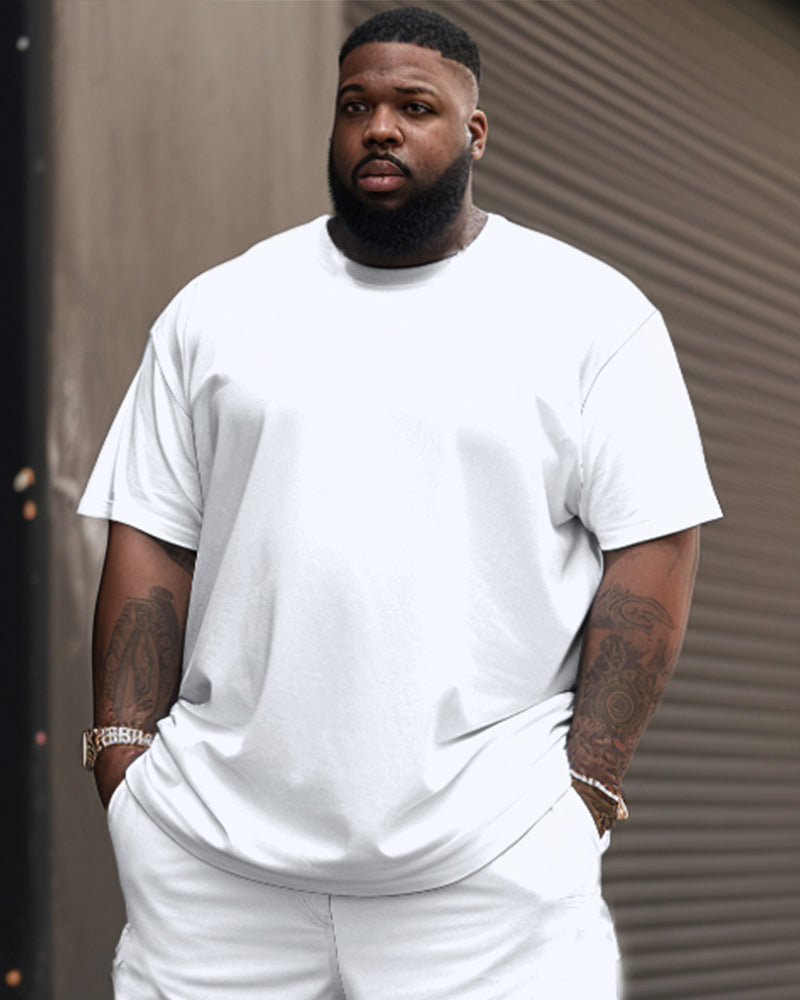 Ready to embrace the power of simplicity? Check out this big men's set in pure white! With its minimalist design, this outfit embodies simplicity and elegance, making it incredibly versatile for any occasion. Its style means you can mix and match it with almost anything in your wardrobe.