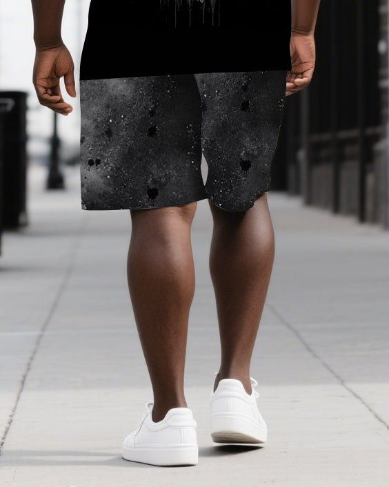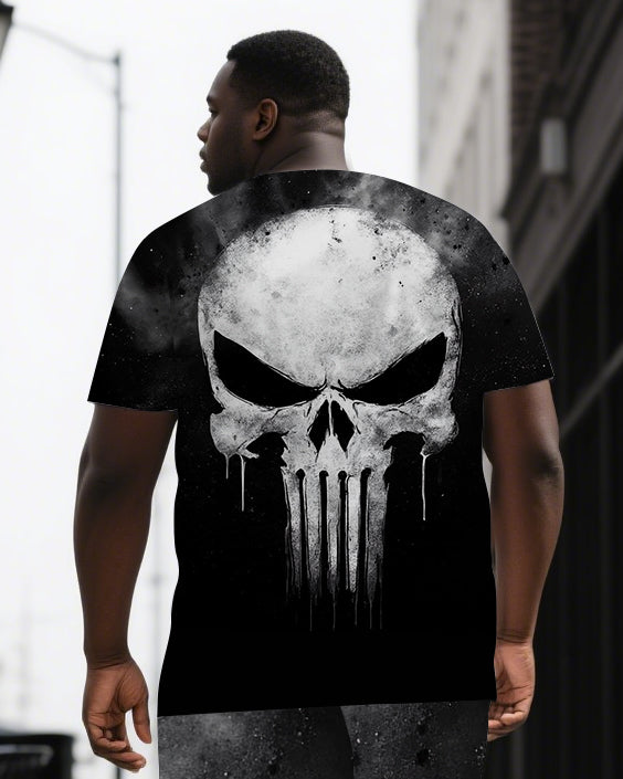 Defy Limits with Punisher Skull Men's Skeleton Black Print Big & Tall Short Sleeve T-shirt Shorts 2-Piece Set