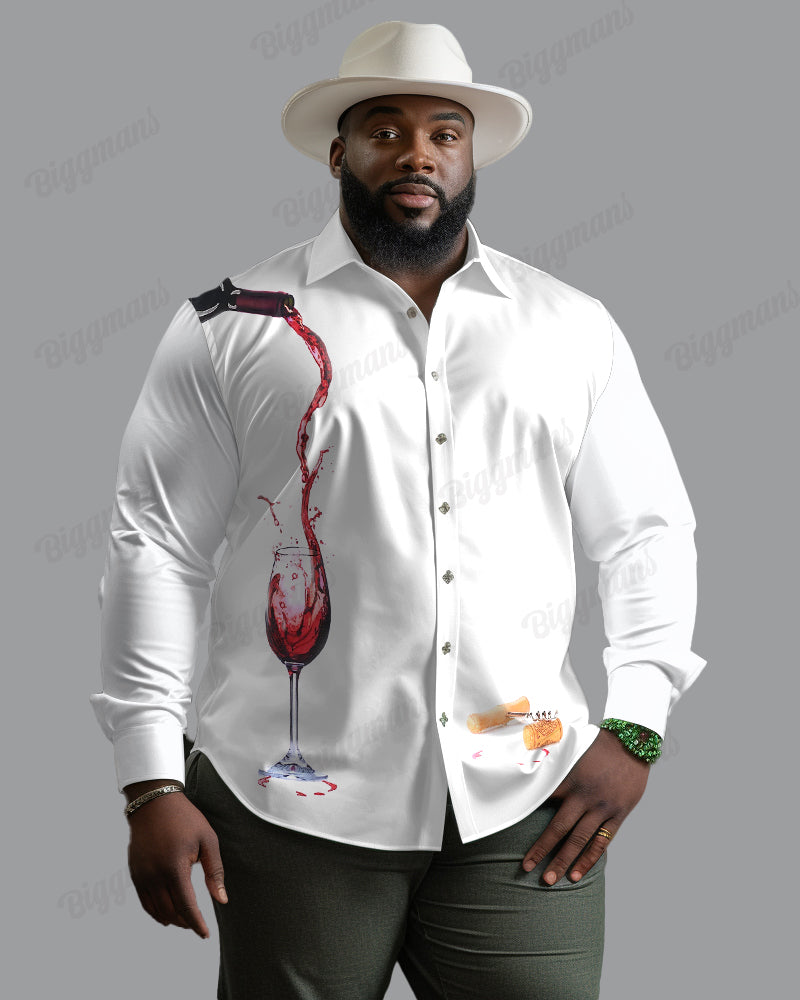 Delicious Red Wine Pattern Long Sleeve Lapel Shirt Men's Plus Size