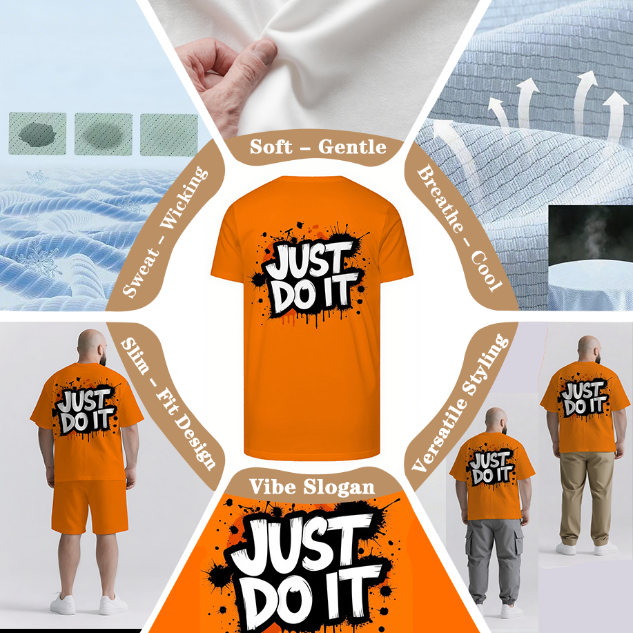 Don’t Think Just Do It Big & Tall Men's Lettering Simple Short-Sleeve T-shirt 2-Piece Set