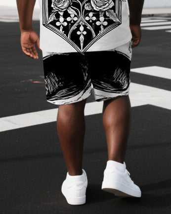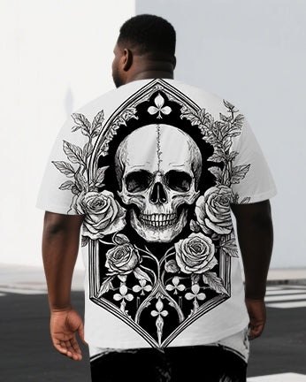 Endings Are Just Echoes Men's Romantic Skull Print Big & Tall Short Sleeve T-shirt Casual Set
