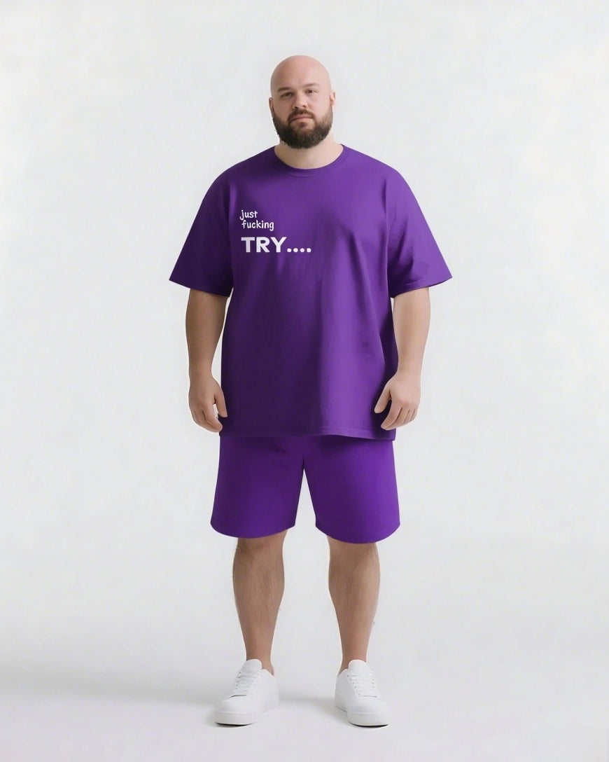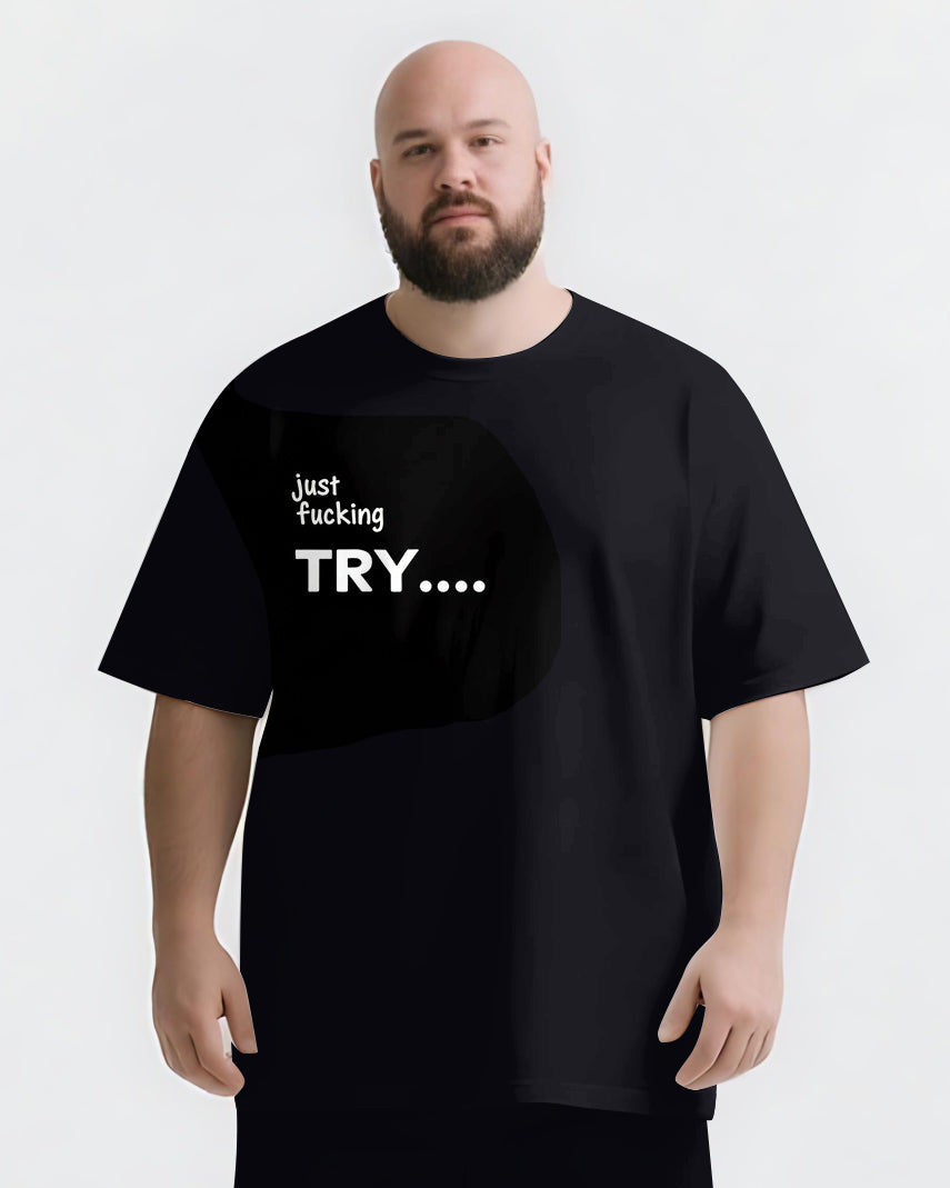 Every Win Starts with One Try Big & Tall Men's Simple Lettering T-shirt 2-Piece Set