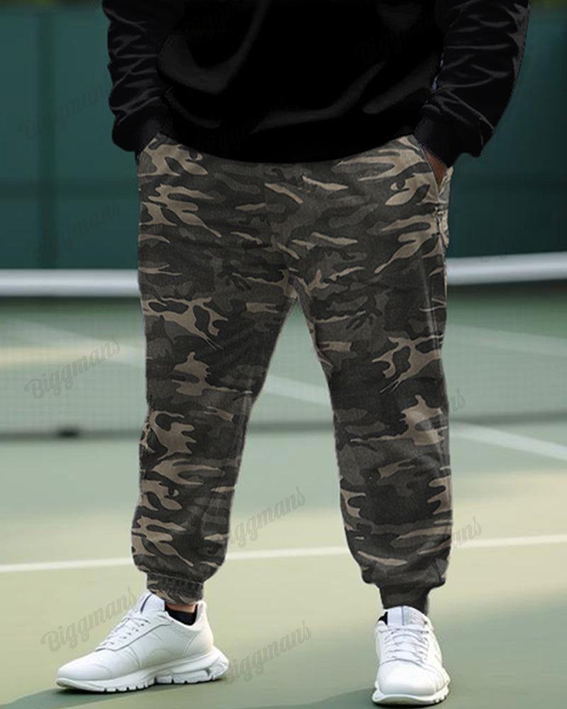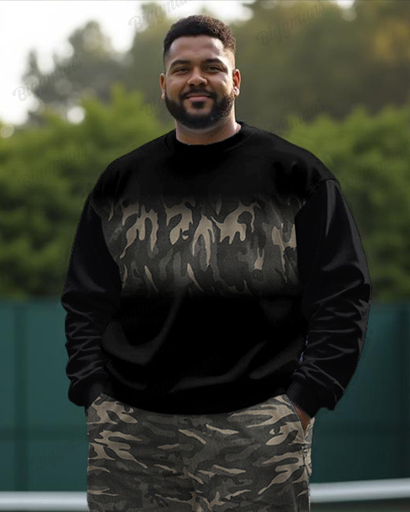 Fashion Camouflage Stitching Men's Plus Size Sweatshirt Two-piece Set
