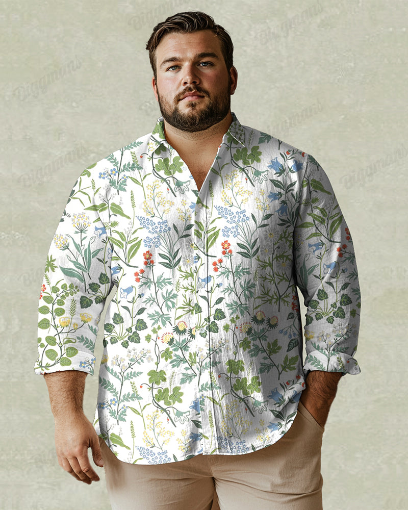 Fashion Romantic Garden Floral Print Long Sleeve Lapel Shirt Men's Plus Size