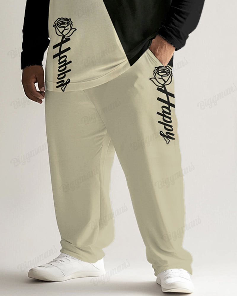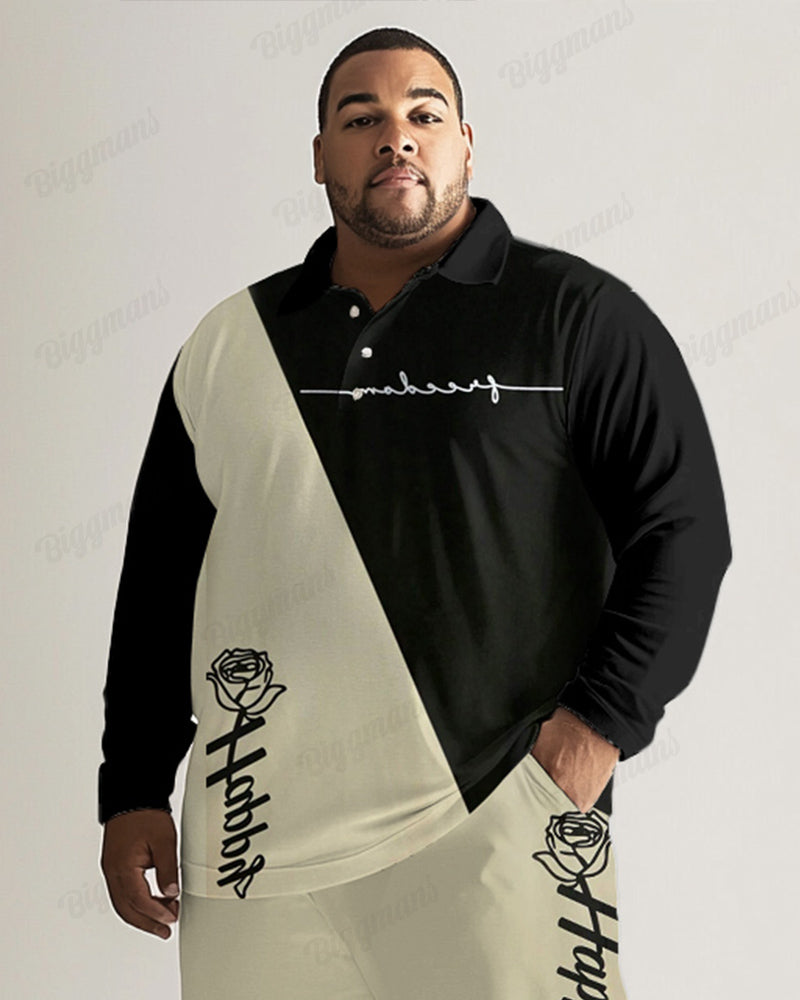 Fashion Simple Color Matching Rose Print Long Sleeve Polo Lapel 2 Sets Men's Plus Size