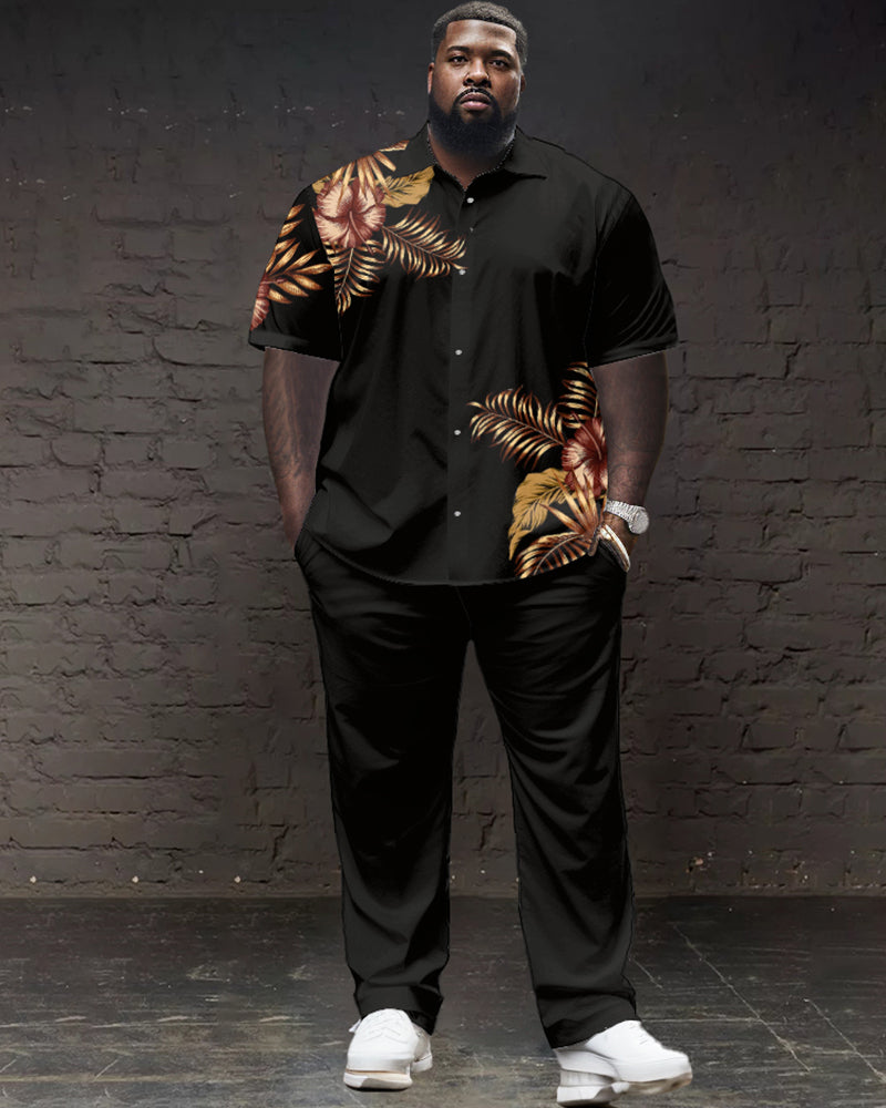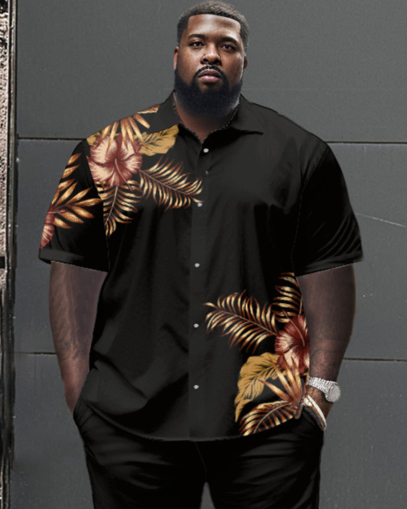 Floral Pattern Large Size Classic Print Men's Short Sleeve Trousers Set