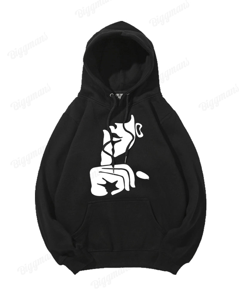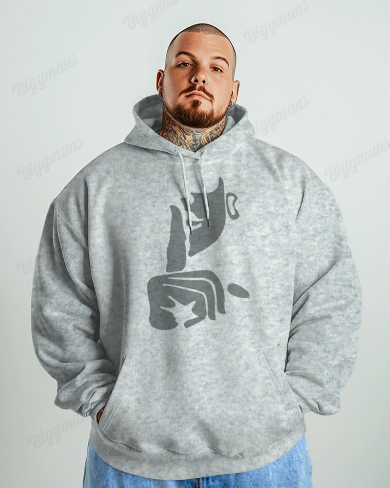 This men's hoodie is available in four stylish colors. Its relaxed fit ensures comfort and effortless layering. The standout feature? A cool print of a figure makes the “silence” gesture, adding a simple yet fashionable touch. Made from soft cotton, this hoodie pairs perfectly with any outfit. Isn’t it great how versatile it is? So don’t speak too much, let your style speak!