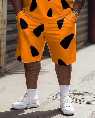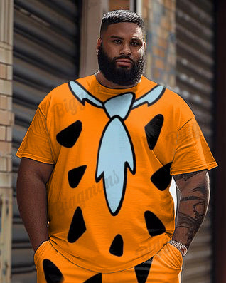 Unleash your retro vibe with this men's two-piece set, featuring a bold orange hue and Fred Flintstone-inspired graphic prints. Channeling the nostalgia of vintage films, this set combines fun character prints with comfortable style. It blends casual fashion with a retro touch, making a statement in style!