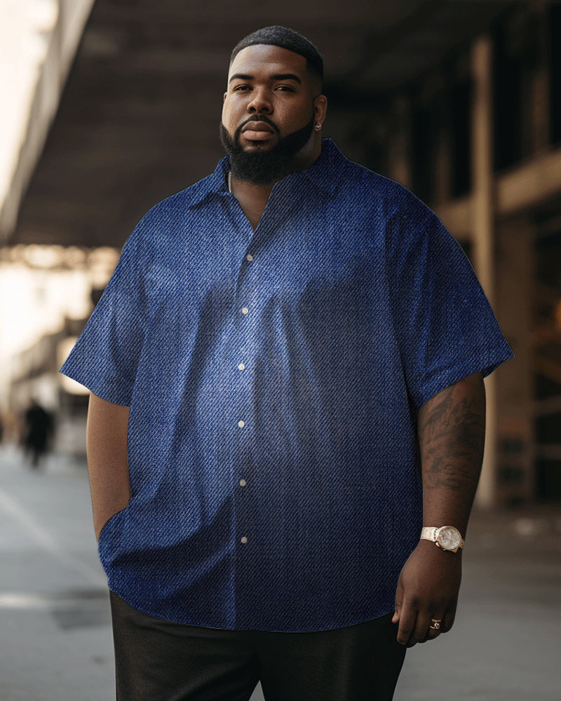 Gradient Denim Blue Printed Short Sleeve Plus Size Shirt