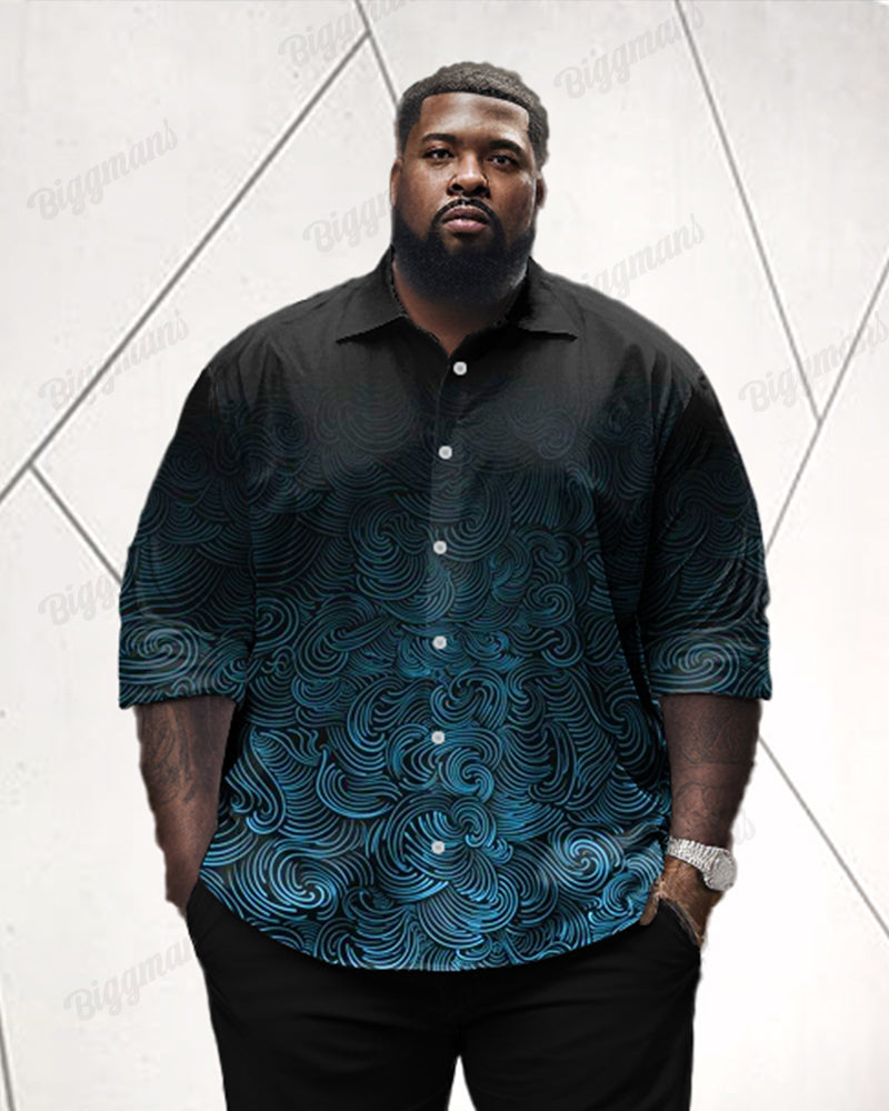 Gradient Irregular Pattern Print Long Sleeve Lapel Shirt 2-Piece Set Men's Plus Size