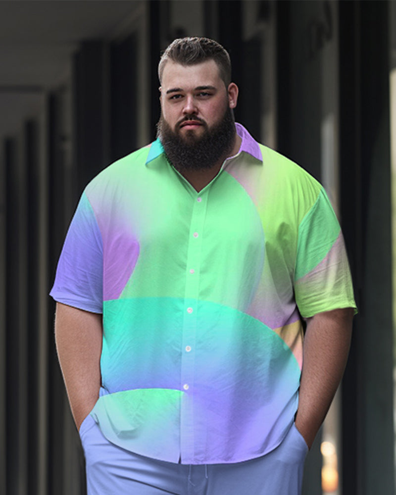 Make a statement with this Plus Size Men's Walking Suit featuring a striking purple gradient design. This short sleeve shirt and pants set blends comfort with bold style, perfect for casual outings or relaxed gatherings. Stay cool, confident, and effortlessly stylish with this eye-catching look!