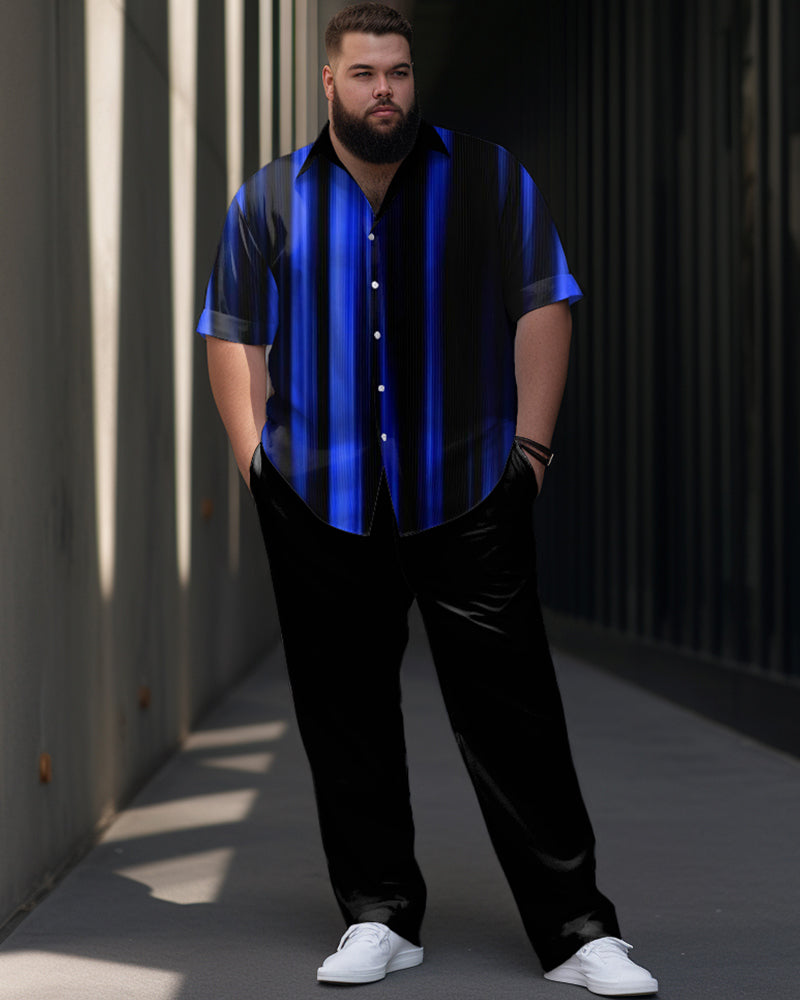 Feel the calm masculinity in this black walking set. With dark blue and black stripes in , this set shows a sense of depth and elegance. Its loose version allows you to move freely in activities. Suitable in summer and autumn, this set can be easily controlled whether casual or formal.
