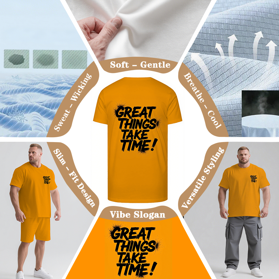 GREAT THINGS TAKE TIMES Slogan T-shirt 2-Piece Set