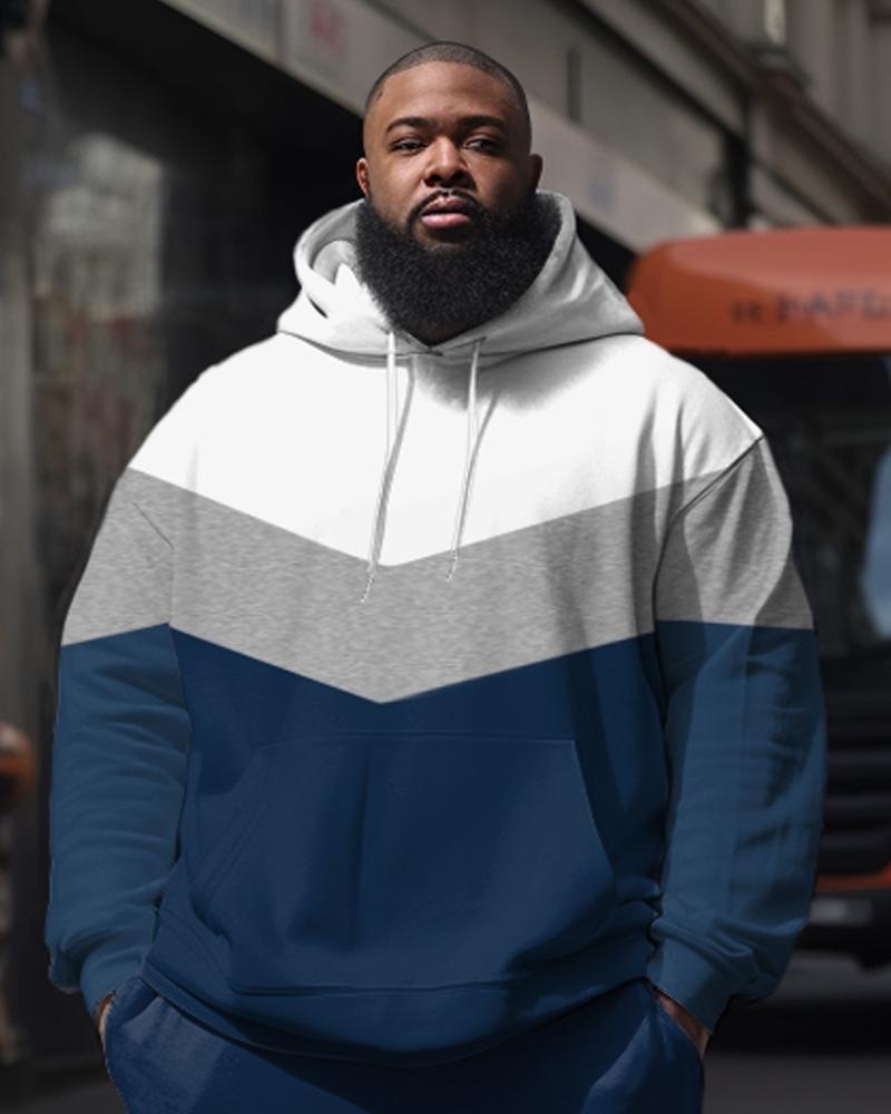The guy's big and tall two-piece hoodie set gives your sportswear a unique sense of fashion. The fitted cut ensures comfort and inclusiveness, suitable for all body types. It can easily cope with daily wear and show the fashionable charm of sports style.