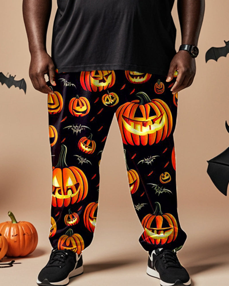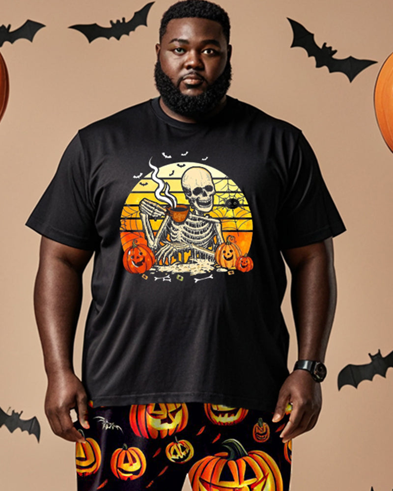 Halloween Personality Pumpkin Skull Print Short Sleeve T-shirt Plus Size Men's Suit