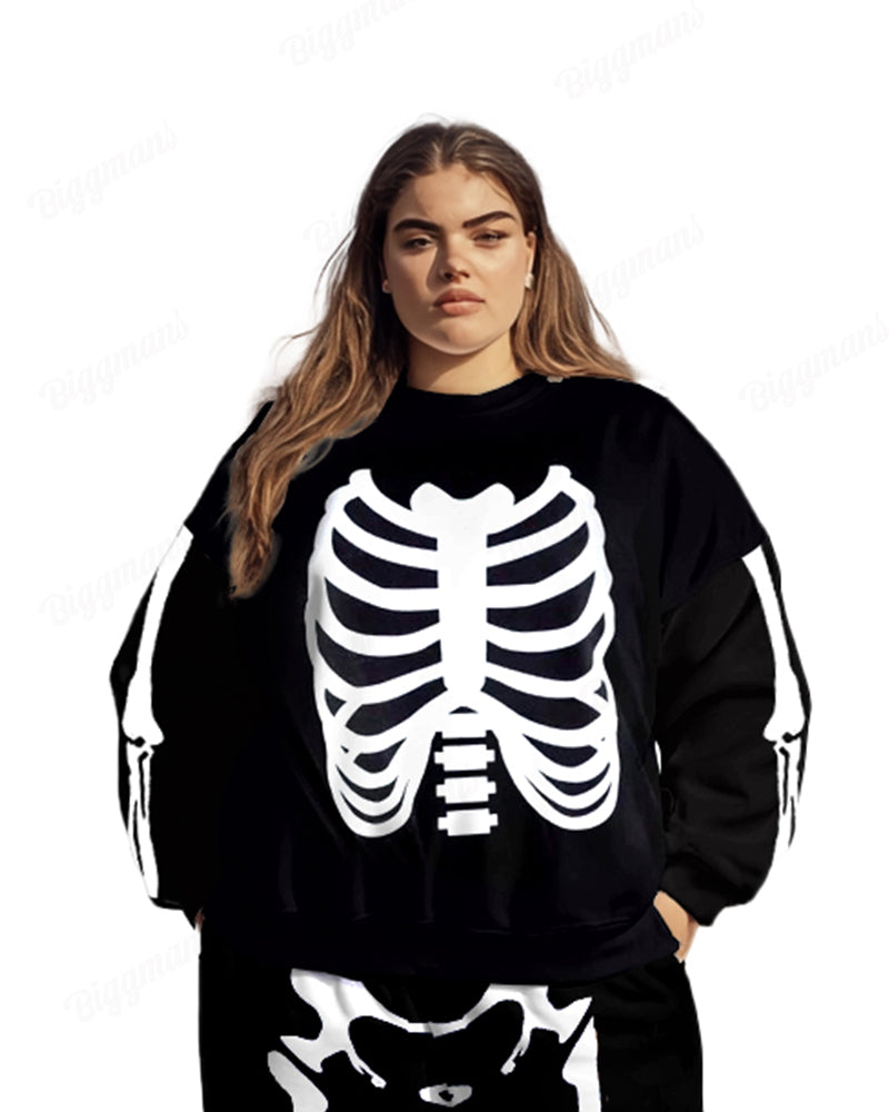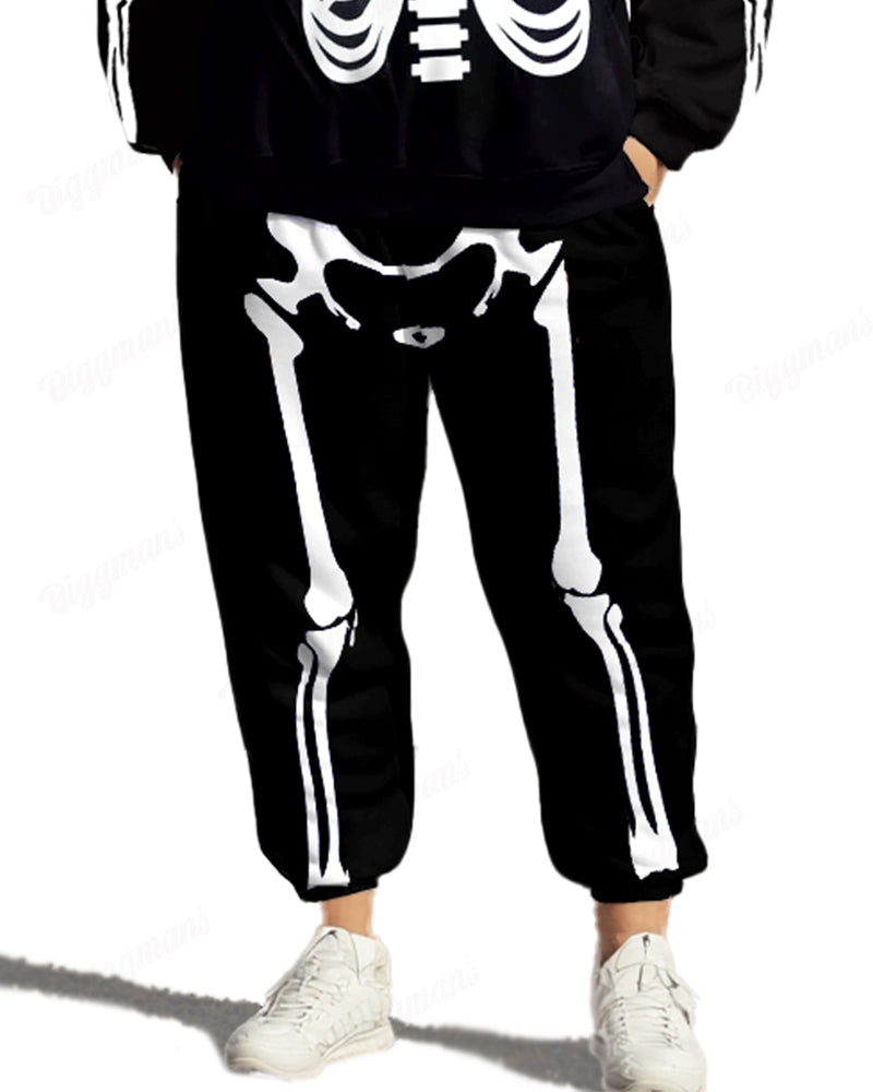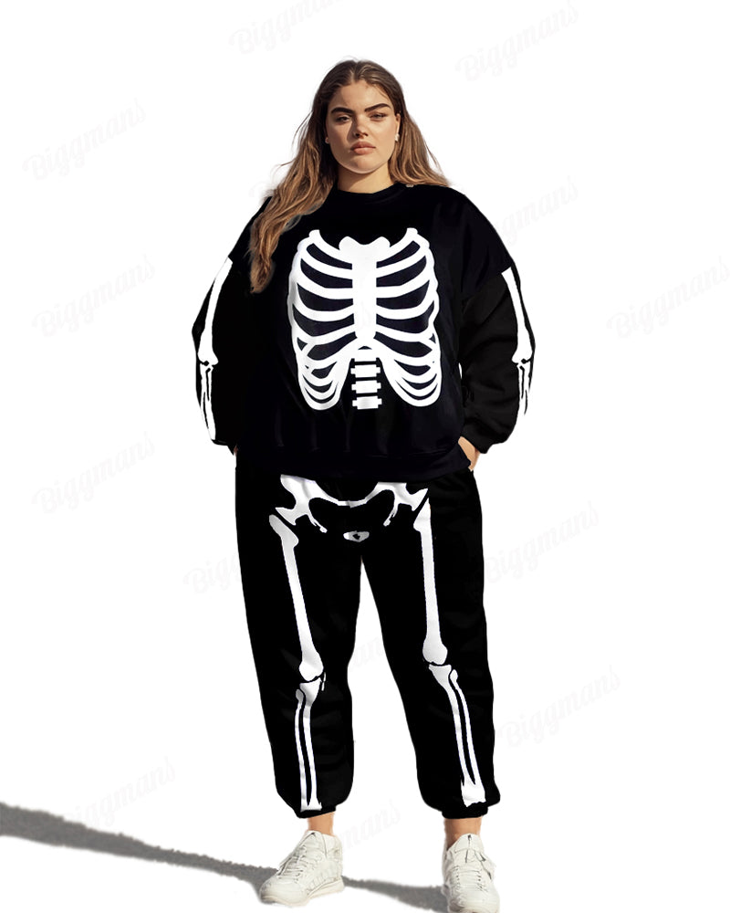 This features a bold skeleton print, combining spooky vibes with effortless style. The minimalist design lets the striking print take center stage, ideal for celebrating the season in style. With its relaxed fit, this set ensures all-day comfort while staying chic.