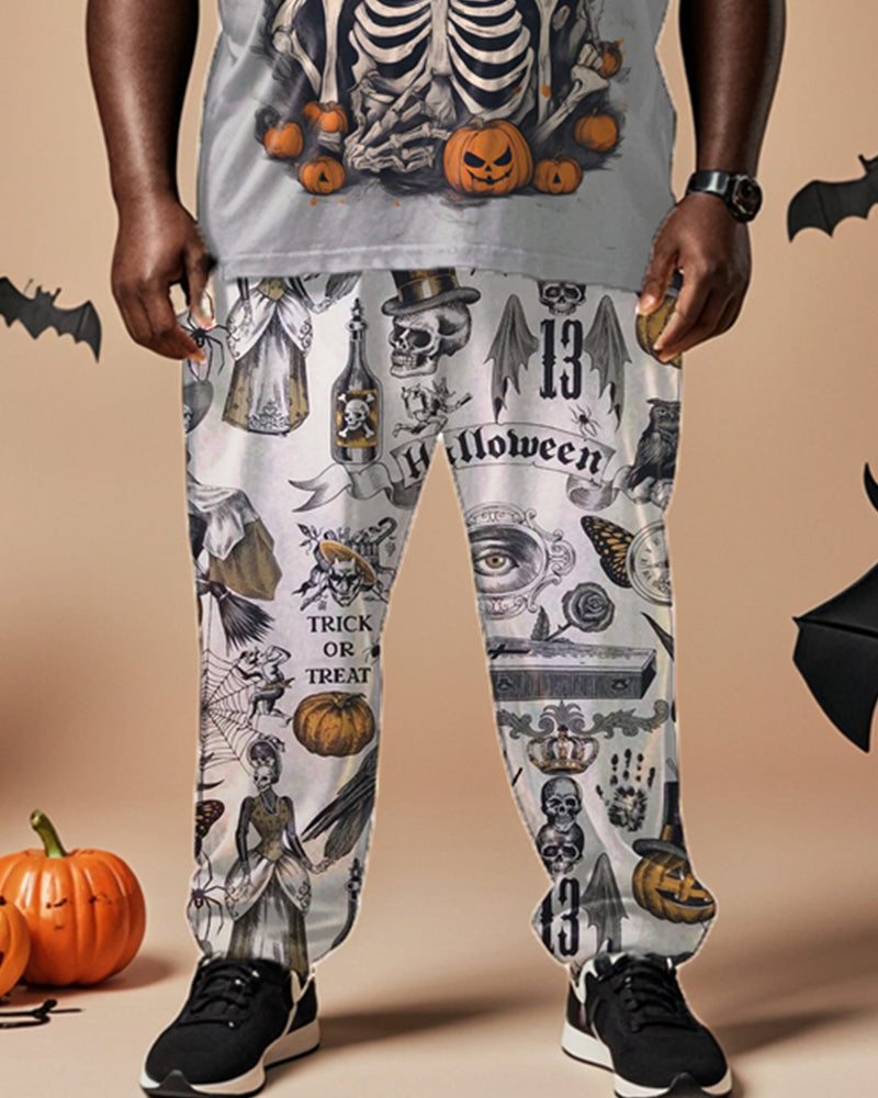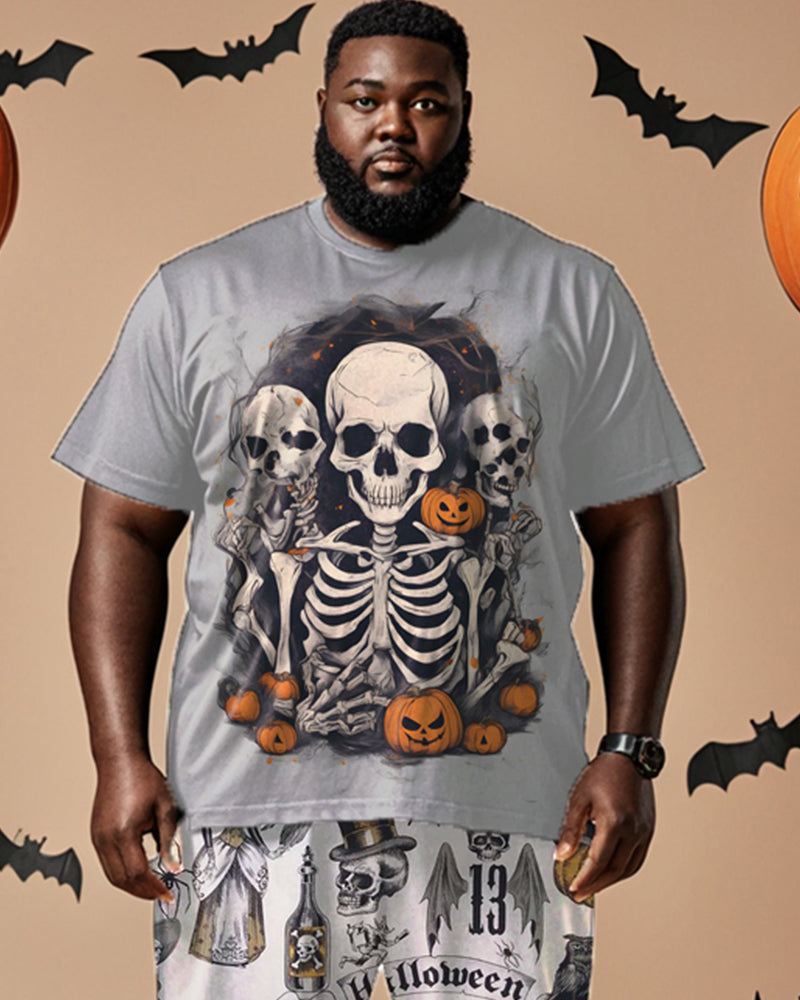 Halloween Skull Short Sleeve T-shirt Plus Size Men's Suit