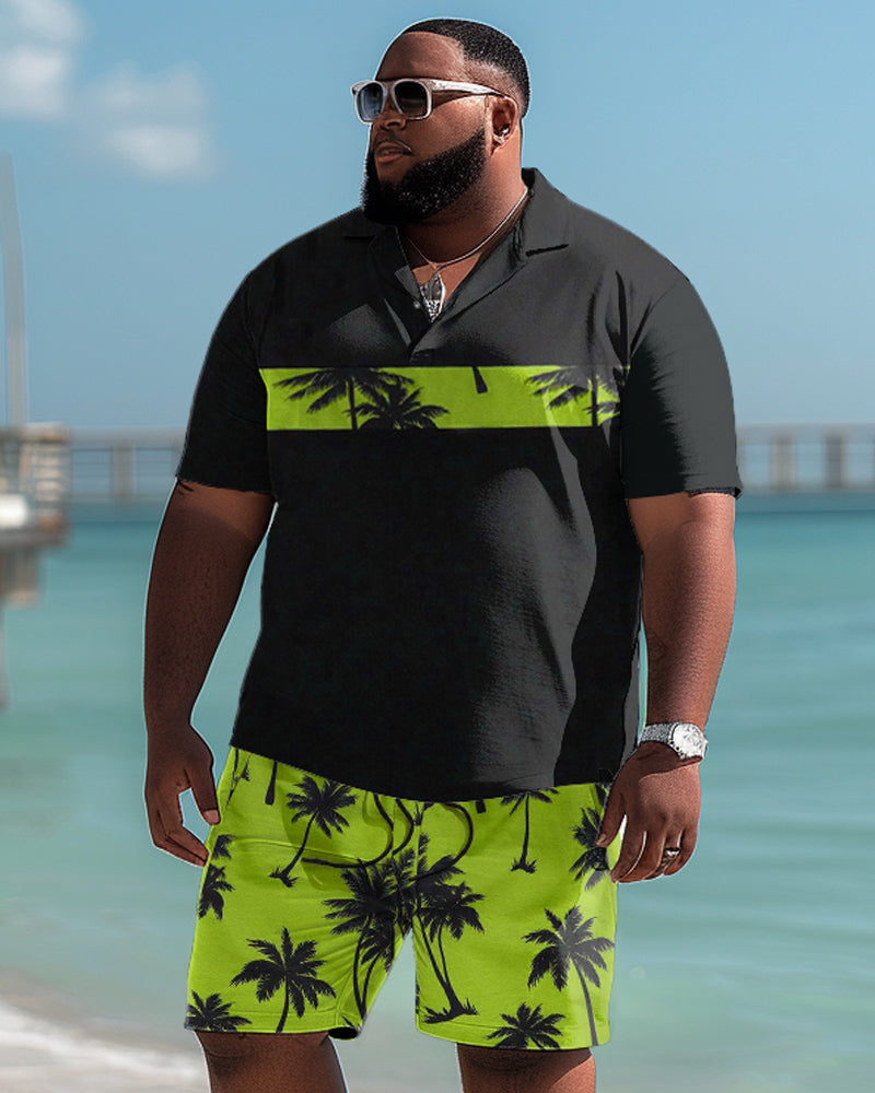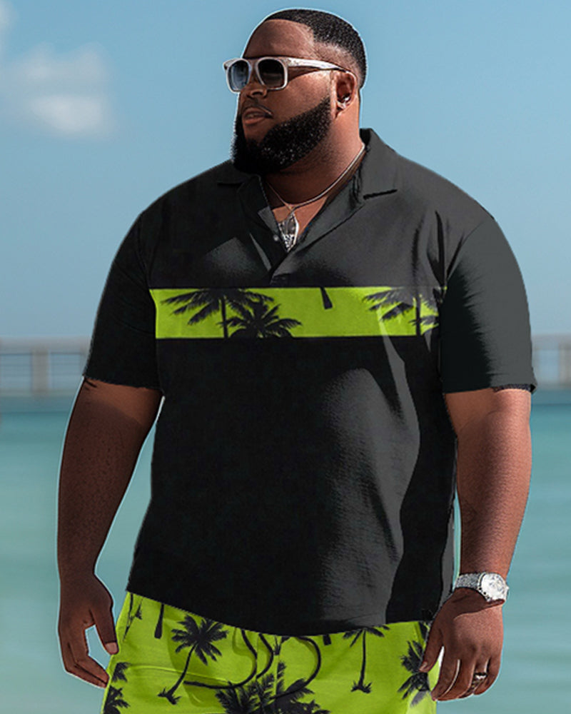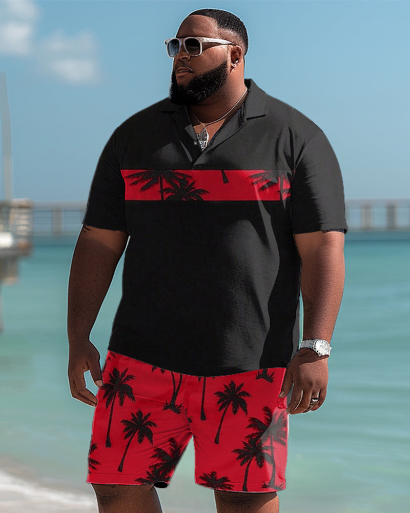 Embrace the laid-back vibes of with our men’s Polo shirt and shorts set. The black Polo shirt features vibrant striped coconut tree prints, available in eye-catching red and green options that evoke a tropical paradise. Designed with a loose fit, this set ensures comfort and freedom of movement, making it perfect for all your summer adventures.