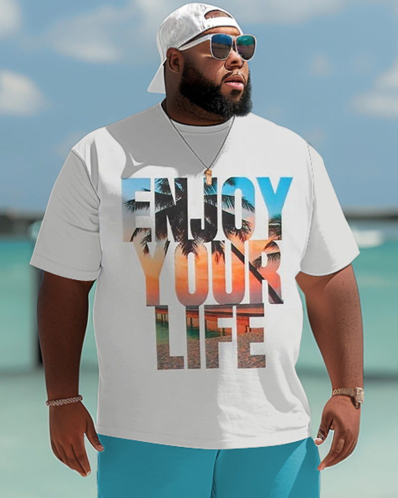 Embrace the cool seaside with coconut trees. This with letters and the coconut tree pattern makes you feel like you are on a seaside vacation. The loose design provides more wearing options for you. Enjoy your life with this short set!