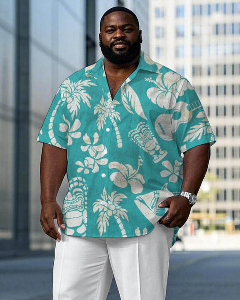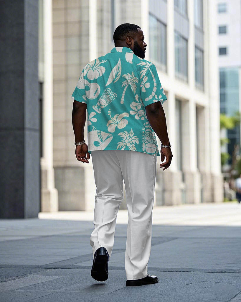 Hawaiian Player Coconut Pattern Short Sleeve Shirt Trousers Suit Men's Plus Size