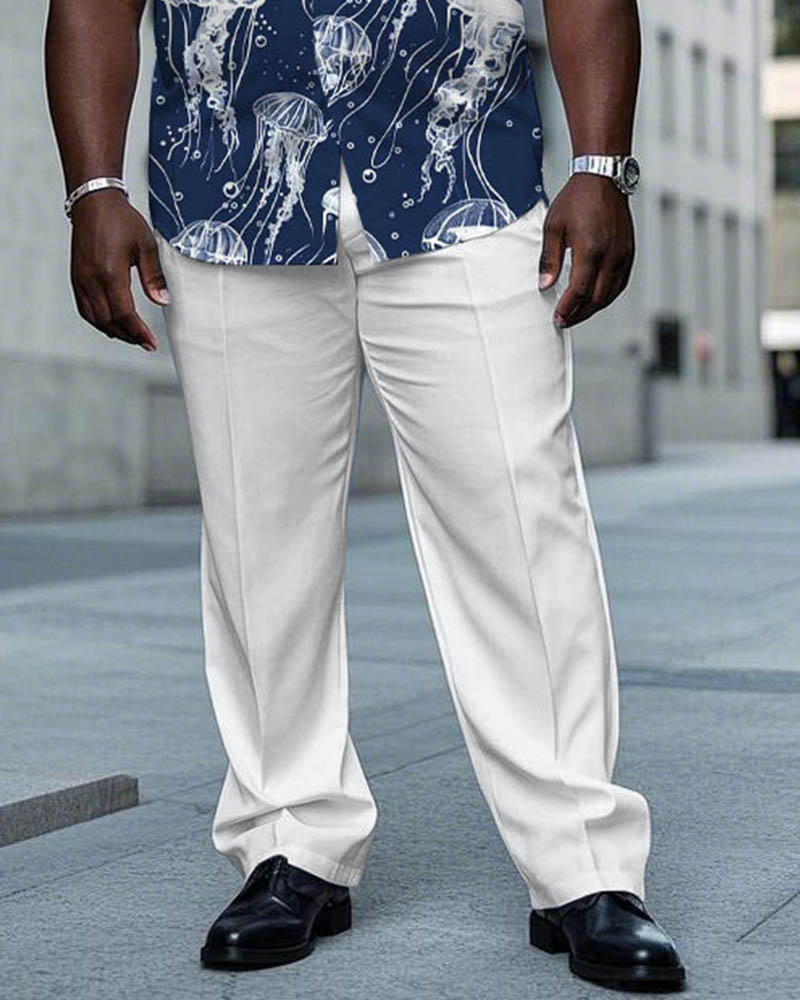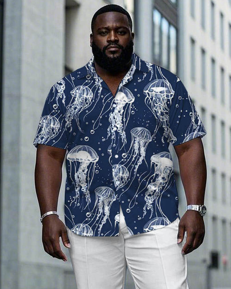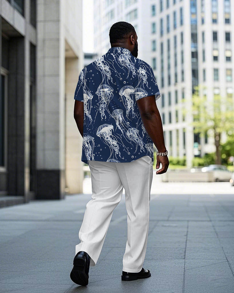 Hawaiian Sea Jellyfish Pattern Short Sleeve Shirt Trousers Suit Men's Plus Size
