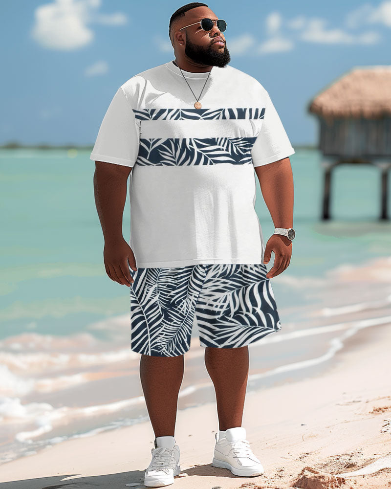 This set for big guys allows you to experience the and modern fashion. The loose version makes you look thinner while giving the body enough freedom. The classic white is matched with the green leaf print, full of tropical style. This set can make you the focus of the crowd wherever you go.