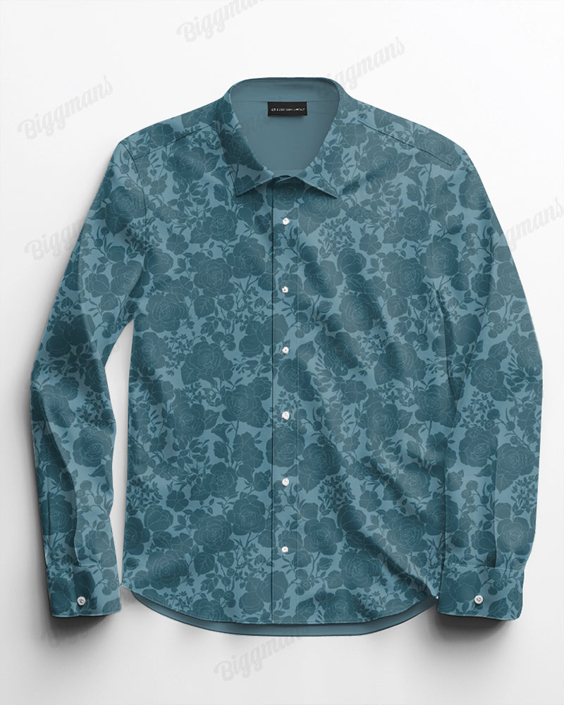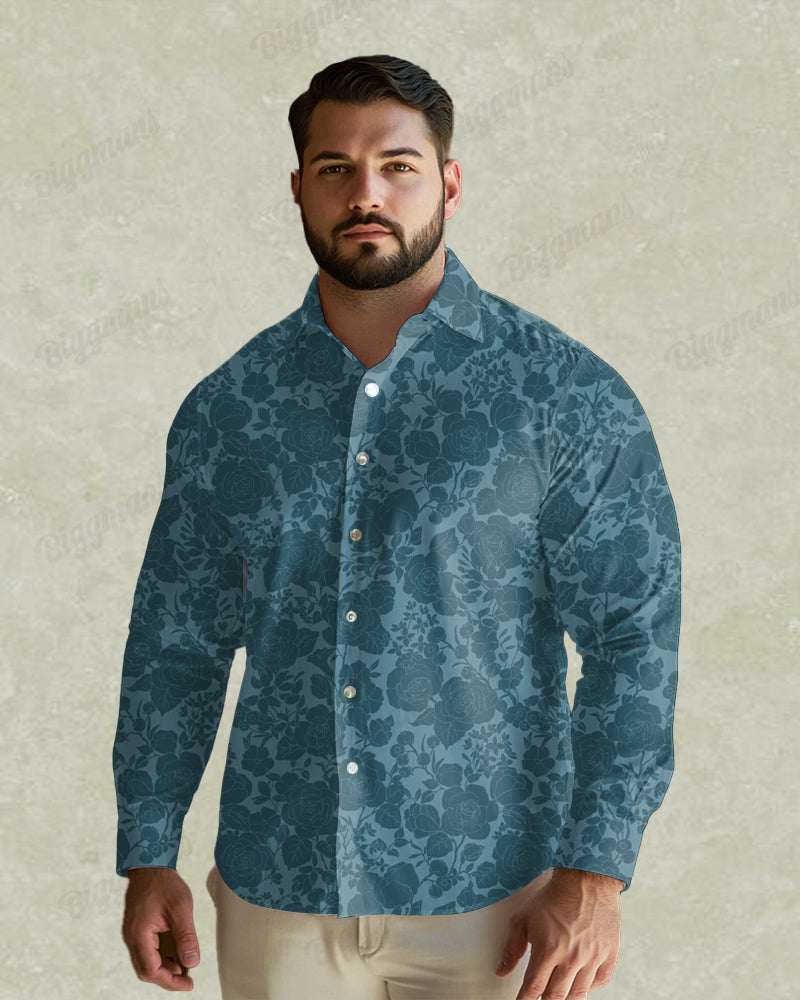 High-grade Rose Jacquard Long Sleeve Lapel Shirt Men's Plus Size