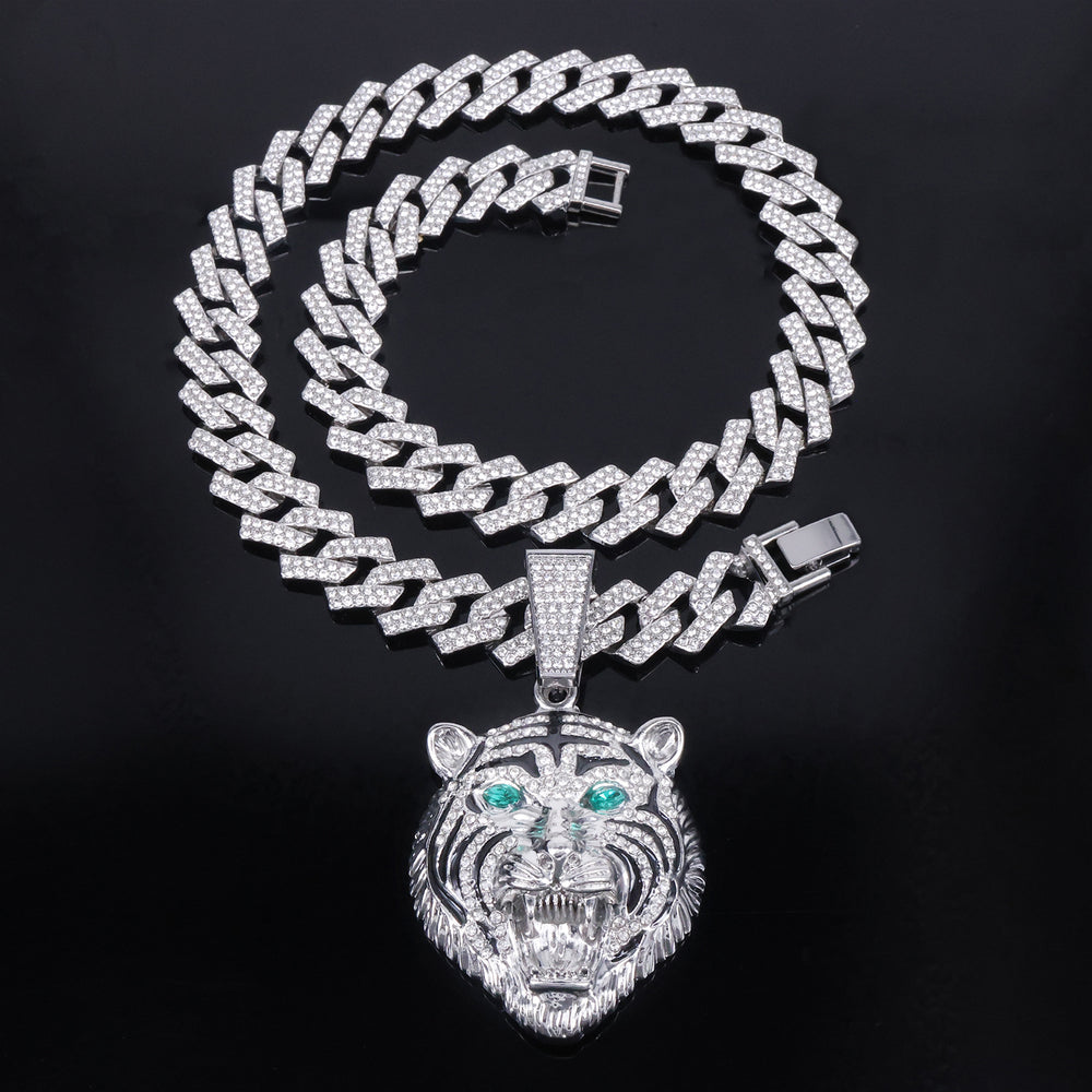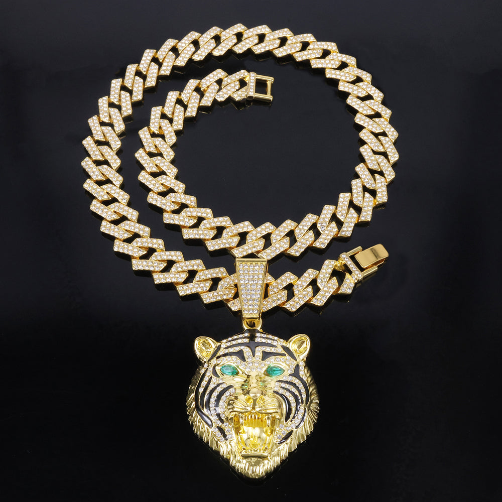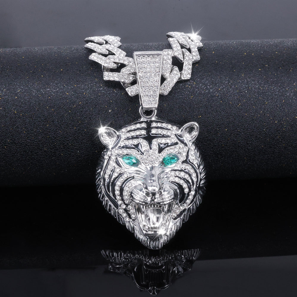 Hip-hop Three-dimensional Full-diamond Tiger Head Encrusted Necklace