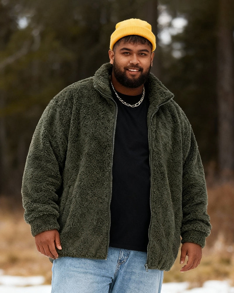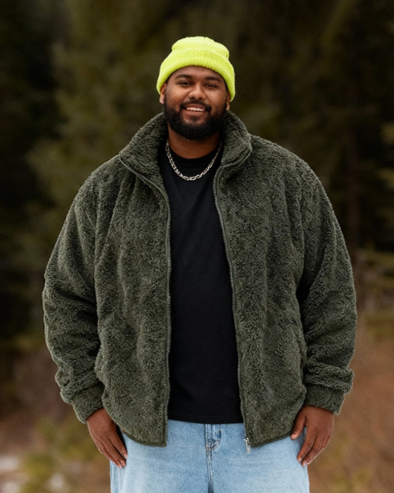 Ig & Tall Men's Solid Color Thickened Velvet Collar Jacket M-2XL